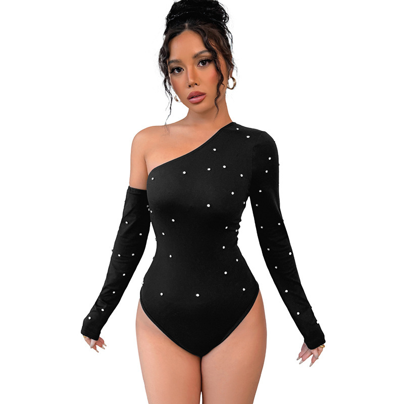 New Fashion Slim Hot Girl Diamond Off-shoulder Long Sleeve Jumpsuit